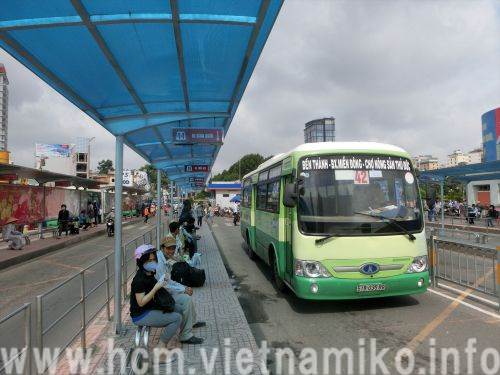 ここで発着しているバスから、メコンデルタ地方の各都市に行くことができます。