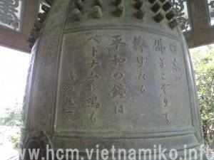 この鐘楼は「平和の鐘」と名づけられていて、日本語で「日本の佛子こぞりて捧げたる。平和の鐘はベトナムに鳴る」とあります。